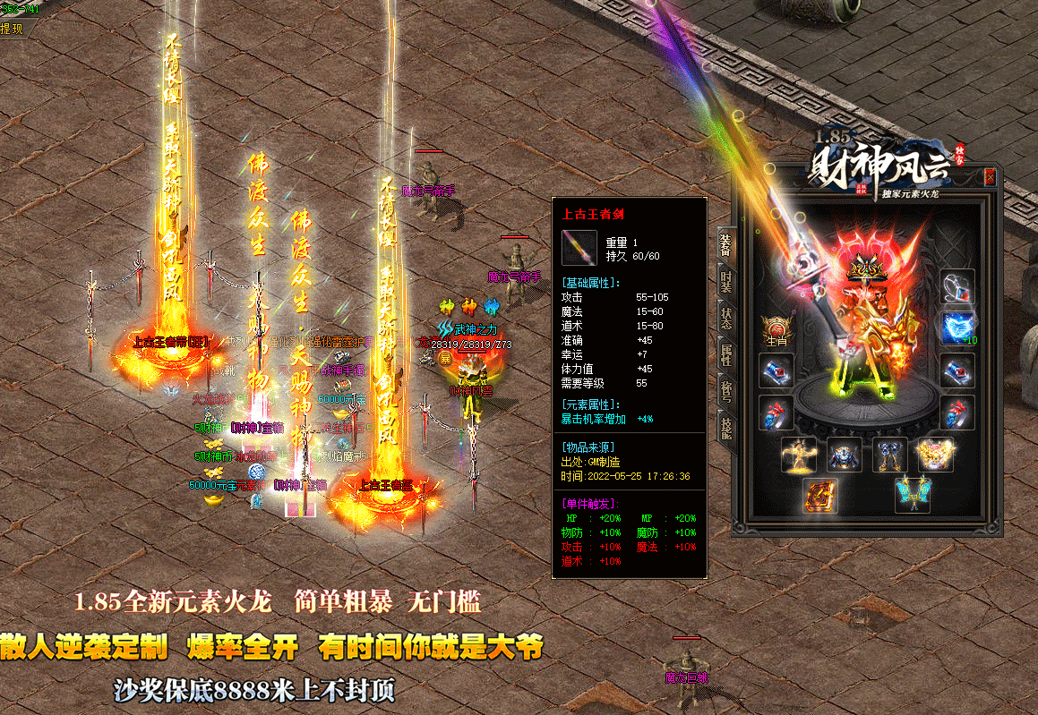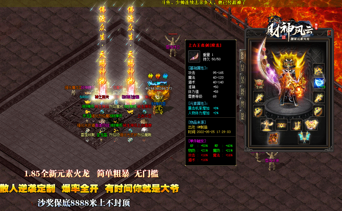 雷霆→战神→火龙→冰龙→等各种装备游戏内体验